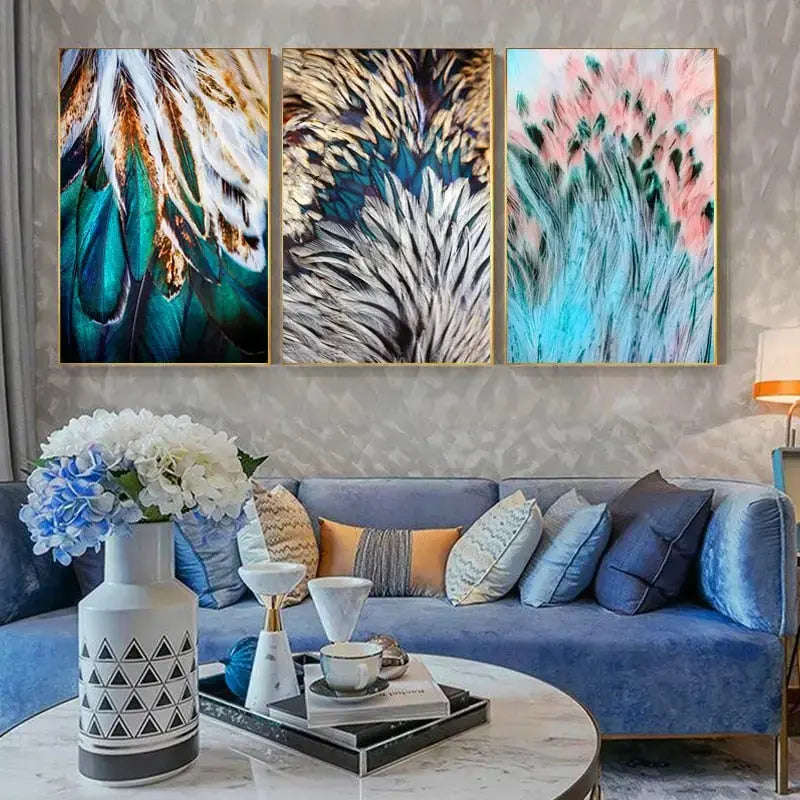 Our Luxury Feather Art canvas collection is an absolute conversation starter, a statement piece. This collection features luxurious art pieces displaying the texture of feathers. Every painting in this collection represents fine luxury when combined. This art can make the perfect gift for anyone who loves a sleek and modern home. n your house!
