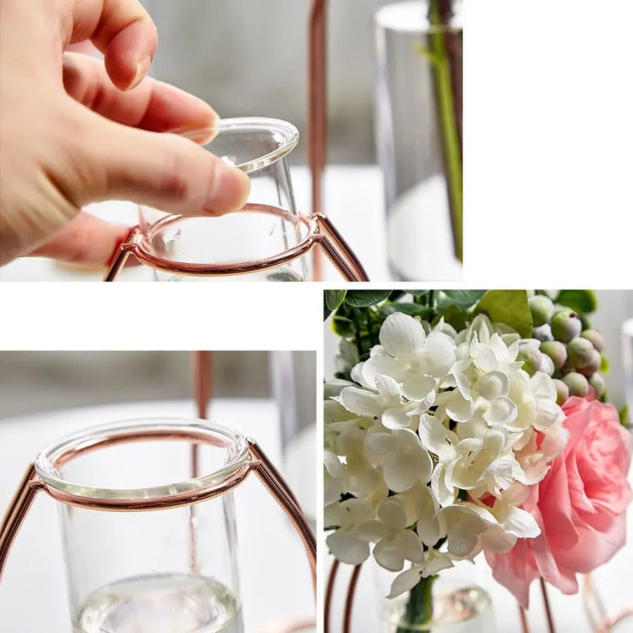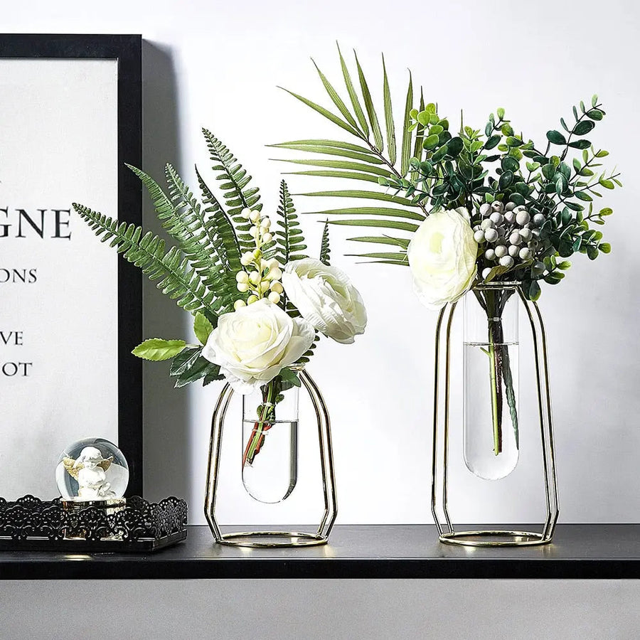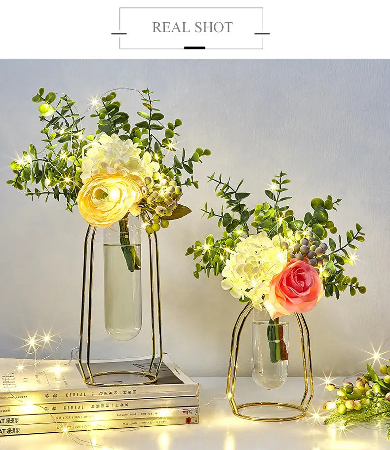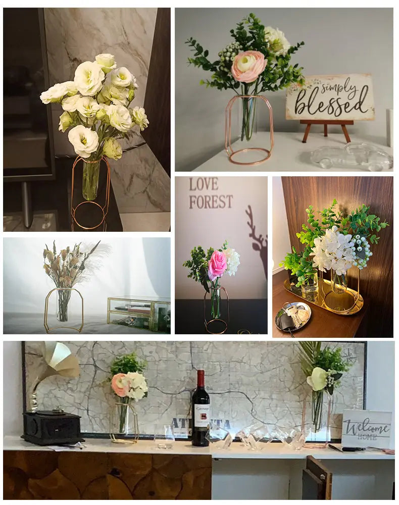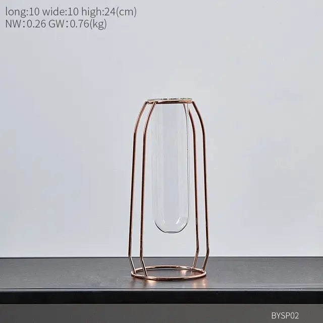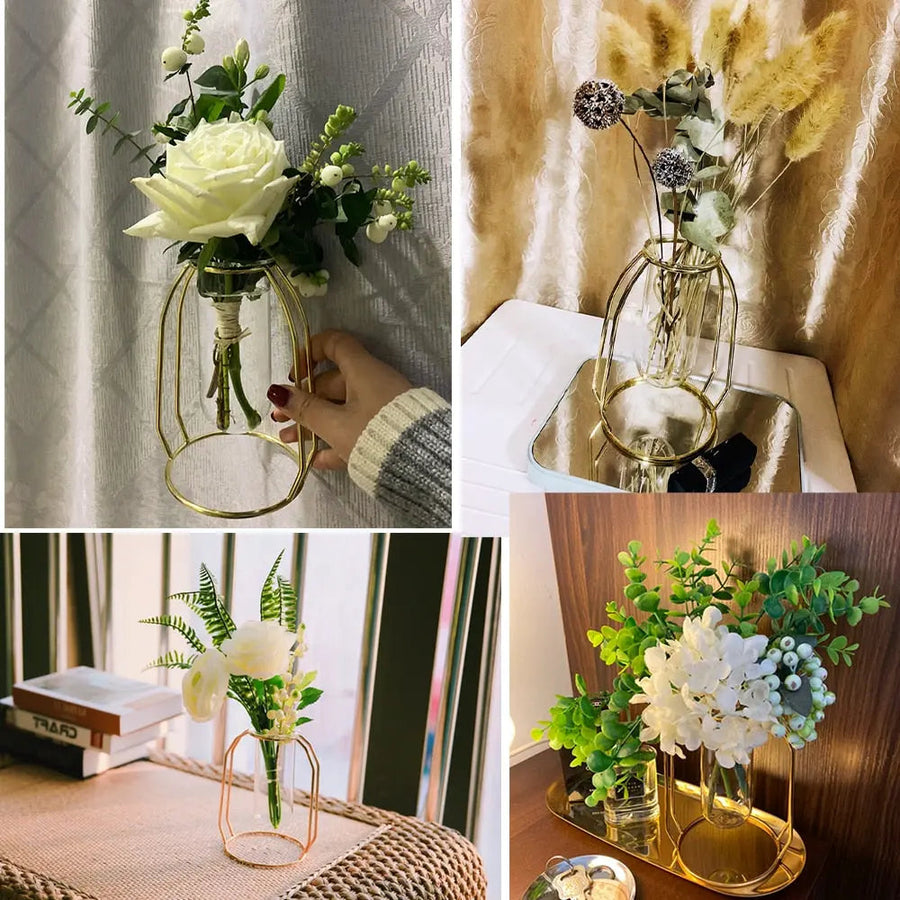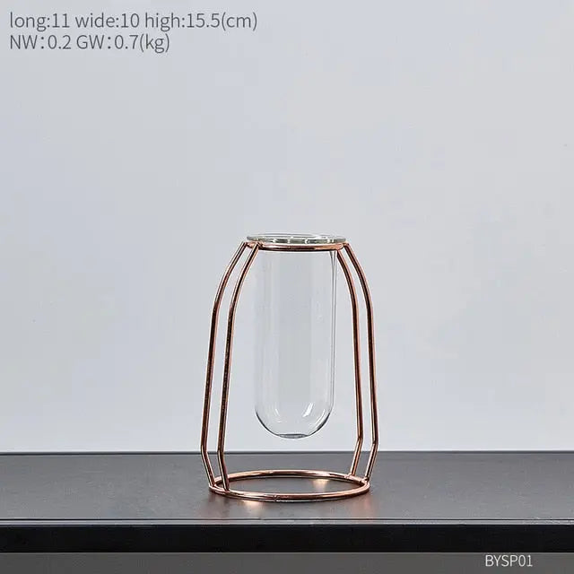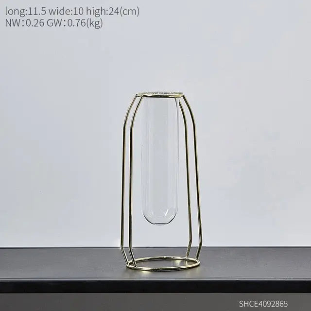 With its simple, sleek design, this glass vase with metal stand offsets potted plants without drawing the eye away from their beauty. These beautiful vases are sure to look stunning wherever you decide to place it. The size is just right and it won't take up too much space.