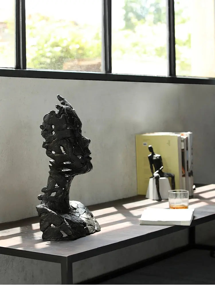 This beautiful and serene handmade abstract sculpture has an Art Deco touch yet has a unique style. Flowing lines and curves add to it`s soulful appeal.